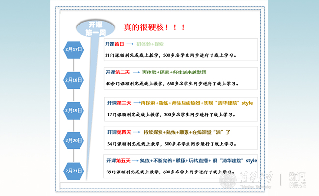 2月17日即开课首日,学院共28门本科生课程、3门研究生课程均顺利完成线上教学,300余人次的学生同步进行了在线学习。2月18日,在开课第二天早上八点,院长庄惟敏,院党委书记张悦、谭纵波老师等七门课程开始云端授课,师生们通过各种技术手段实现了线上“面对面”,空间、时差、网络、互动等问题都被一一克服,配合也越来越默契。