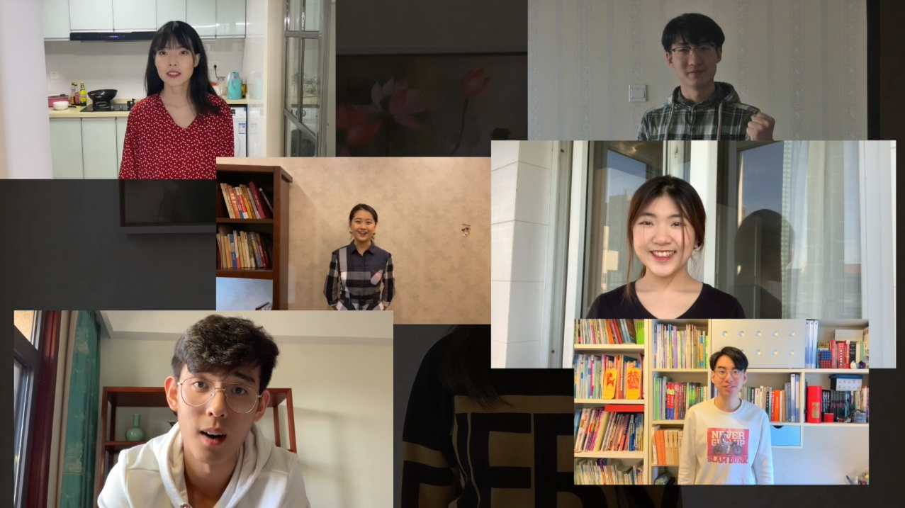 两校同学共同打开视频,齐声为中国加油,为世界加油。
