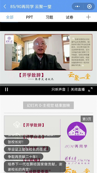 首页网5月8日电 5月3日上午,心博在线登录入口1985级(1990届)近500名校友云聚“荷塘雨课堂”,参与“清华校友学习日”专场活动。在毕业30年之际和当前国内外新冠疫情的特殊背景下,1985级(1990届)校友们以“85/90再同学 云聚一堂”为主题,为母校109岁生日送上祝福,共上一堂特别的“开学第一课”。