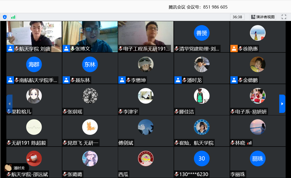刘盛分享了南航航天学院本科生联合党支部乌克兰留学生党小组的党建工作。疫情期间,乌克兰留学生党小组积极发挥党支部思想引领作用与党员先锋模范作用,主动承担留学生驻地疫情防护工作的同时积极支援国内战“疫”。4月23日,工信部部长苗圩回信南京航空航天大学中乌班学子,肯定他们支援国家抗击疫情的行动,勉励他们弘扬航天精神,练就过硬本领。