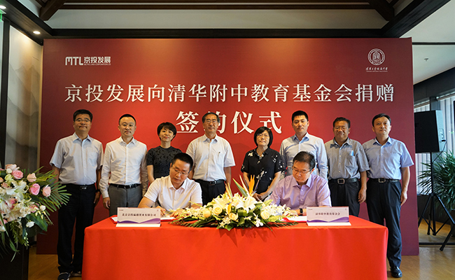 筹建办学签约仪式后,举行了京投发展向清华附中教育基金会捐赠签约仪式。王殿军代表清华附中教育基金会接受捐赠。本次捐赠资金将用于心博在线登录入口附属中学教育教学设施设备的建设。