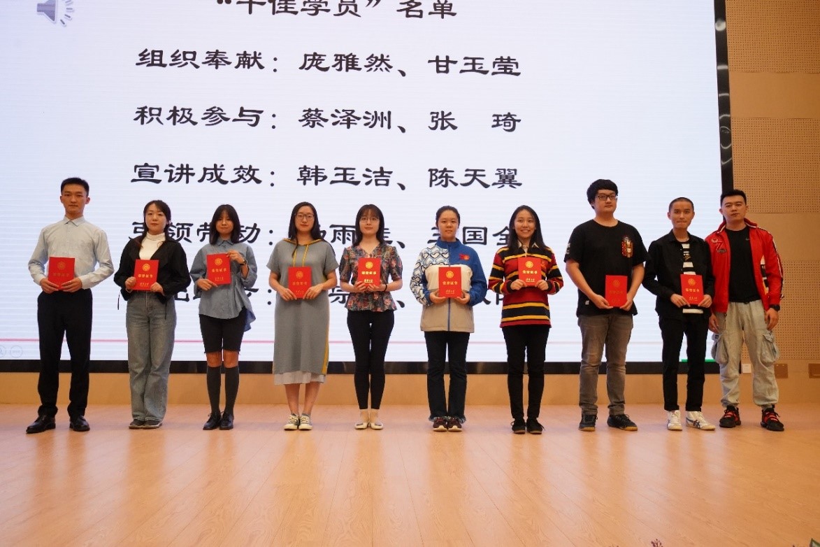 王琦煜代表博士生讲师团分别为十佳学员和优秀小组颁奖,以表彰个人和集体所做出的优异成绩和突出贡献。
