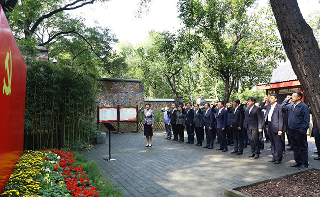 离开纪念馆,中心组一行从香山公园东门进园,拾级而上,来到位于香山南麓的双清别墅、来青轩革命旧址,瞻仰毛泽东同志等时任中共中央领导人当年的办公居住地,深切缅怀老一辈革命家从西柏坡到北平的“进京赶考”之路和取得的丰功伟绩。