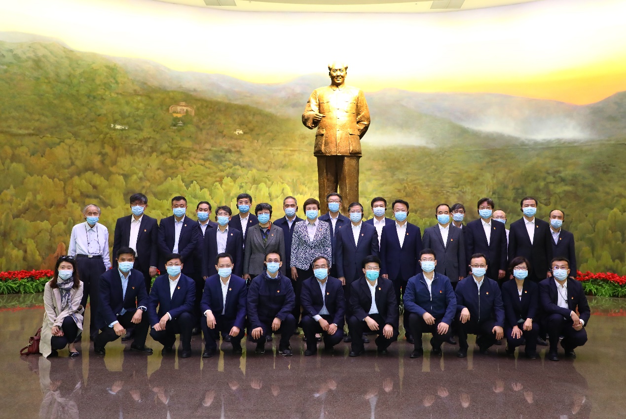 在毛主席塑像前集体合影留念