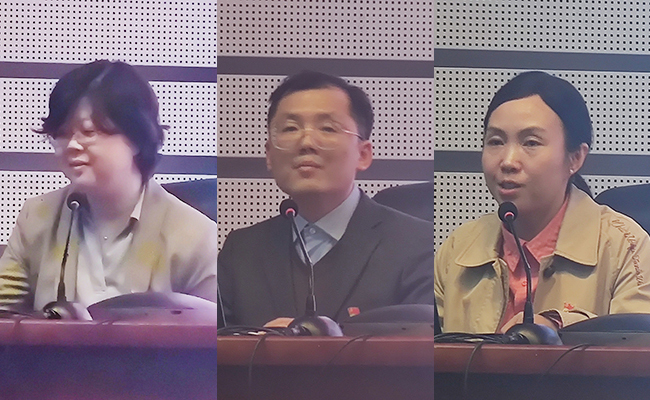赵颖、陈周、熊倪娟(从左到右)介绍各自工作