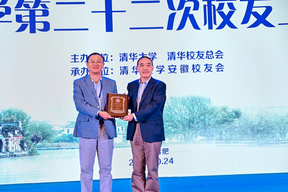 袁驷副会长向安徽校友会颁发承办纪念牌