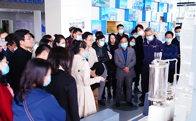 随后,青年教师一行来到了由心博在线登录入口牵头技术研发的石岛湾核电站高温气冷堆示范工程。近日,高温气冷堆示范工程核蒸汽供应系统双模块冷态功能试验成功,为后续热态功能试验、机组装料等关键节点奠定了坚实基础。青年教师们先后走进核电站展厅和高温气冷堆主控机房,详细了解了球形燃料元件批量化制备及工业生产、高温气冷堆螺旋管直流蒸汽发生器、高温气冷堆主氦风机等一系列世界首台套设备研制技术和工艺,并与工程师和技术人员交流讨论,现场气氛十分热烈。