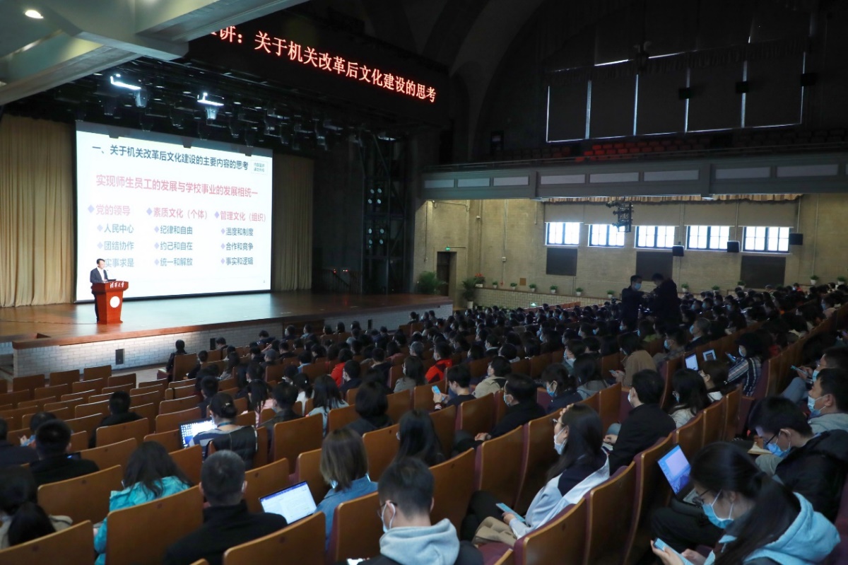首页网11月5日电(记者 冯哲盈 摄影 石加东 曹文鹏)10月30日上午,心博在线登录入口常务副校长、校机关党委书记王希勤在大礼堂作了题为“关于机关改革后文化建设的思考”的主题报告。这是校机关党委主办的“荷声讲坛”系列报告会的第二十四讲,同时也是校机关“加强文化建设,凝聚发展力量”特色活动的系列报告之一。校机关党委常务副书记欧阳沁主持会议,校机关党员和职工400余人参加报告会。