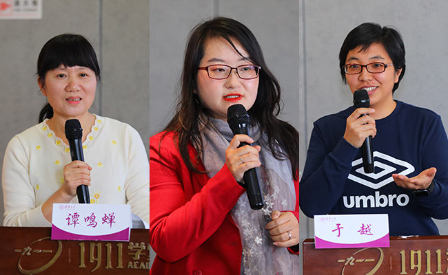 谭鸣蝉、彭赟、于越作交流分享(从左到右)