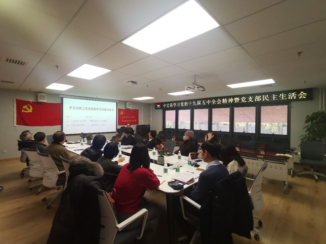 支部副书记邱冰汇报了过去一年的具体工作,以及语言学学科建设情况。随后,大家以党的十九届五中全会精神为指引,就中文系的学科建设与人才培养等问题展开了热烈讨论。
