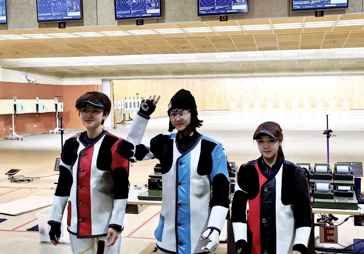 王泽儒(中)获得女子步枪50米三种姿势冠军