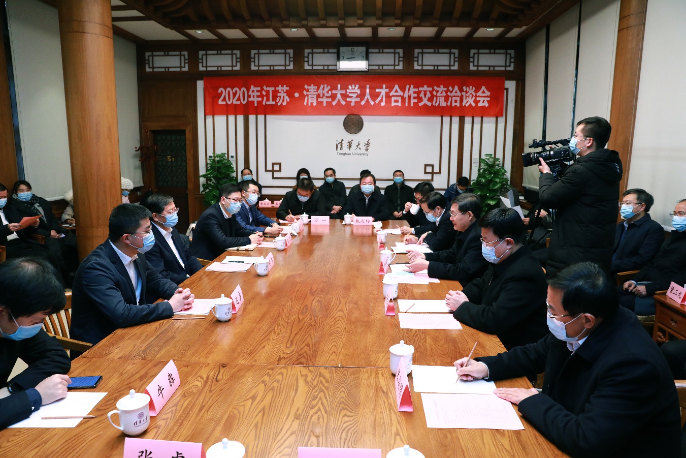邱勇代表学校对郭文奇一行表示欢迎,并感谢江苏长期以来给予清华各项事业的支持以及对清华在苏校友的关心和培养。他表示,江苏对科技和人才工作十分重视,是清华产学研合作项目最多、合作效果最好的省份之一。近年来,江苏出台多项引才政策,在平台上给予人才更多机会。他希望双方进一步加强在科技成果转化、人才培养交流等方面的合作,鼓励和支持更多清华学子到江苏建功立业,推动省校合作迈上新的台阶。