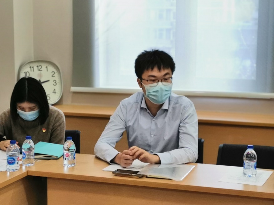 刘悦的入党介绍人分别介绍培养情况和综合表现,王正位代表党支部介绍了刘悦的培养发展过程、综合政审情况及支部考察意见等,支部党员就刘悦的表现分别发表意见。廖理肯定了刘悦同志在培养期内的综合表现,希望刘悦同志发挥自身特长,多为青年教师和学生们发挥思想引领的作用。经过无记名投票表决,大会一致同意接收刘悦为中国共产党预备党员。