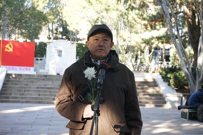 活动最后,全体师生依次走到林枫、郭明秋同志墓前,献上手中鲜花并瞻仰墓碑。
