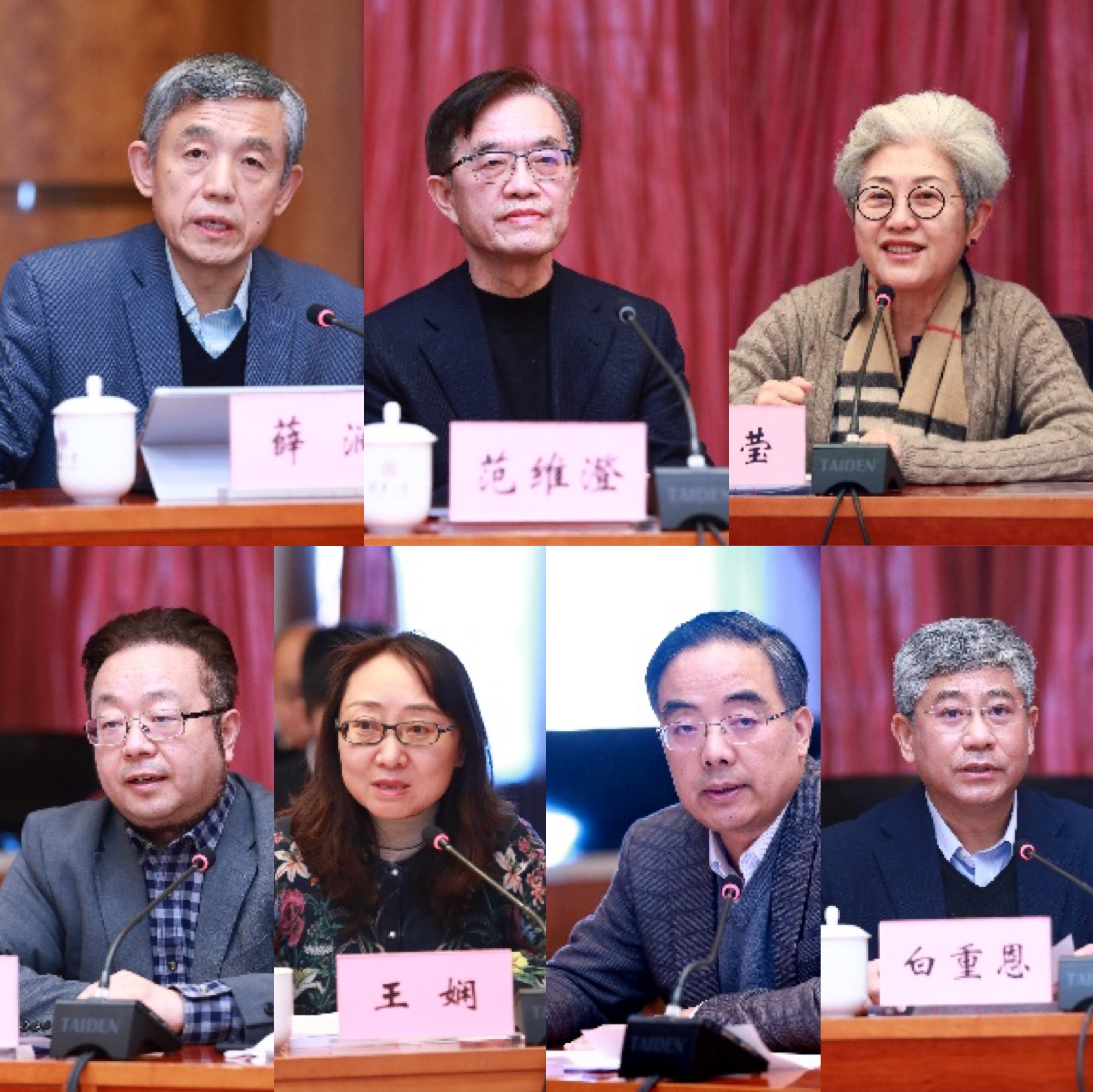 薛澜、范维澄、傅莹、贺克斌、王娴、康重庆、白重恩(从左至右、从上至下)先后发言