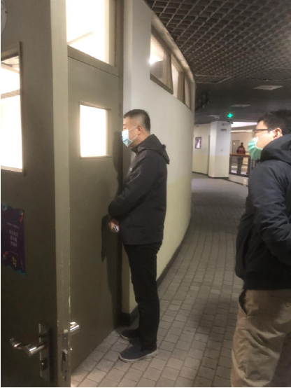 7点40分,杨斌一行来到六教,六教A区门口的志愿者早已准备就绪,提醒上课学生进入教学楼佩戴好口罩。8点上课铃声响起,杨斌一行来到六教零层至四层的多间教室门口仔细查看师生的教与学状态,途经的教室网络、摄像机、音响等软硬件设备均正常运行,保障了课堂的顺利开展。教室内,教师学生按照规定佩戴口罩上课。因疫情原因,学生未能正常返校的课堂开启了线上线下融合式教学模式。