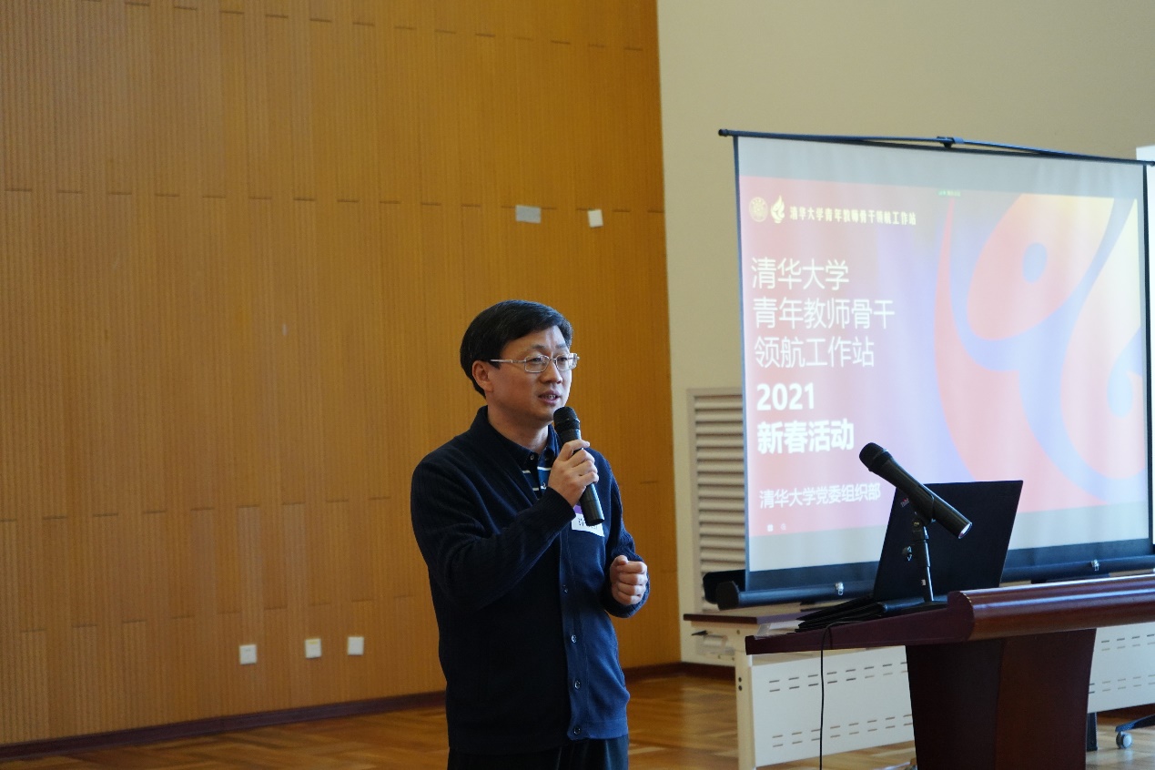 在新春交流环节,工业工程系统计中心执行主任邓柯以“脚踏实地,砥砺前行——统计学科在清华”为主题,分享了统计中心基本建设情况、近年成长发展、和取得的优异成绩,并希望能够进一步加强统计中心与不同学科交流,拓展合作;生命学院张伟以“神经科学的现状和未来”为主题,介绍神经科学的学科背景和主要内容、以及近年清华神经科学的学科建设发展,阐释了中国“脑计划”的提出与进展情况;社科学院钱静以“更开放更融合的教学之路”为主题,分享了在2020年中的教学工作心得体会,从疫情之初成为“在线教学指导专家组”一员开始,分享了如何与大家克服困难,探索在线教学的新模式新方法,着力打造校内开放观摩课和对外开放慕课,并提出教师应该转变教学理念,更重视学生的体验和需求,在融合式教学模式中不断取得新突破。