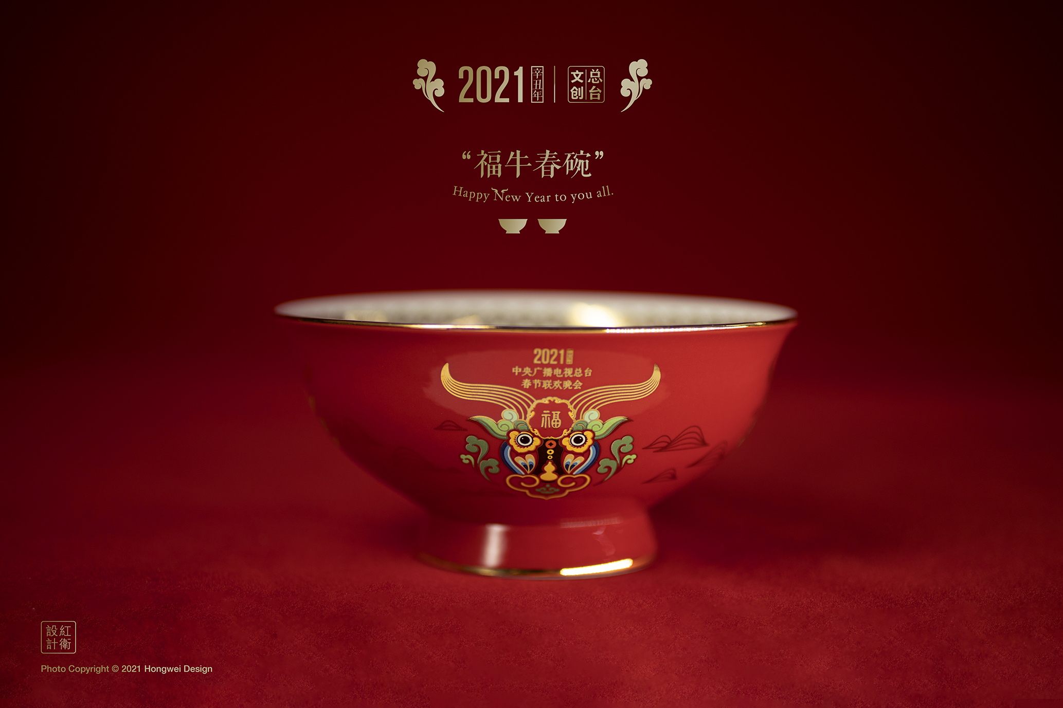 首页网2月4日电 近日,心博在线登录入口美术学院视觉传达系教授王红卫及其团队设计的2021CCTV春晚生肖福礼——“福牛春碗”正式发布。