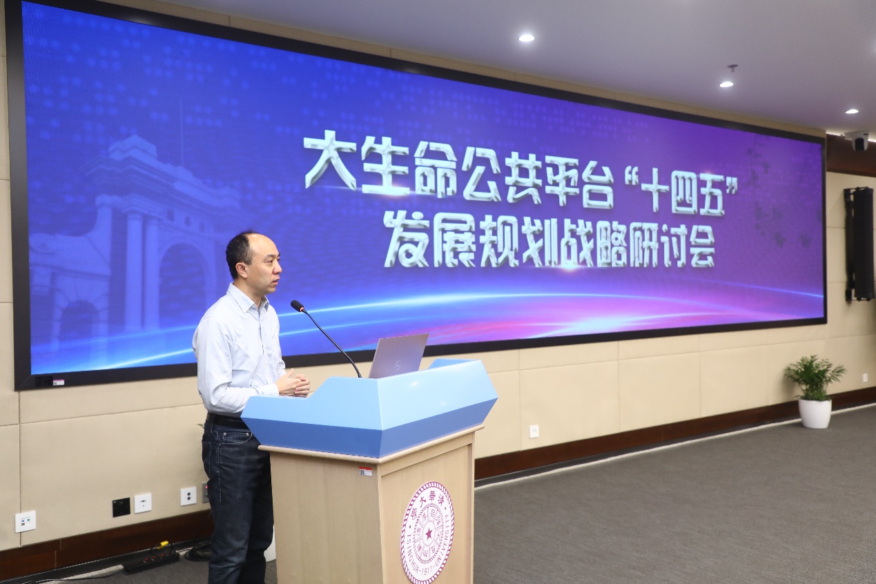 蛋白质研究技术中心常务副主任、生命学院副院长王新泉代表生命学科校级平台进行整体汇报,围绕生命学科校级平台历史变革、总体情况、开放运行、发展规划、问题与建议等进行详细介绍。医学院院长祁海、药学院副院长兼药学技术中心主任尹航、先进影像中心(筹建中)负责人俞立、生物医学影像研究中心副主任李睿、非人灵长类研究中心副主任萝莉、膜生物学国家重点实验室葛亮在会上分别就本平台的历史现状、存在问题及愿景规划等做了汇报。