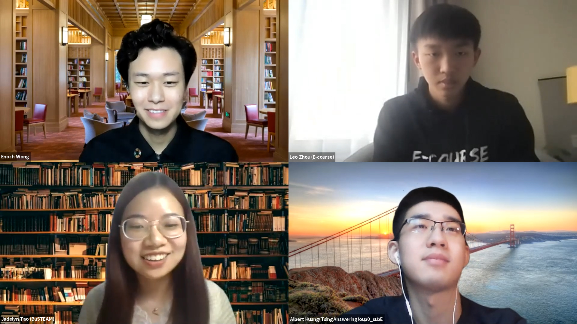 在圆桌讨论环节中,SDG开放创新马拉松挑战赛的三支优胜学生队伍(BuSTEAM微光巴士、E-course、清答疑)进行了项目汇报展示,并从学生视角对高等教育中的可持续发展目标4(SDG4)与挑战式学习(CBL)的关系分享想法。