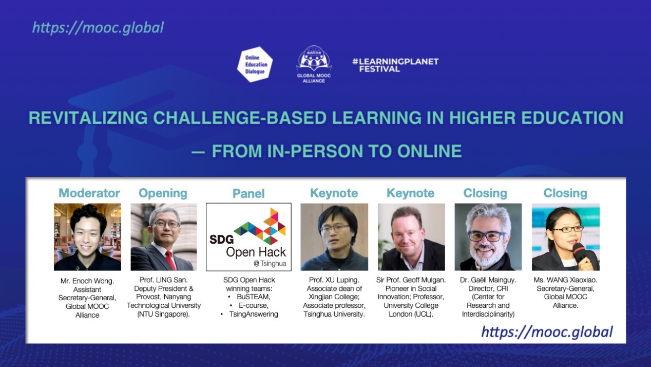 首页网1月29日电 北京时间1月26日下午,2021在线教育对话系列(一)“高等教育中挑战式学习的繁荣——从线下到线上”在线交流通过学堂在线国际版直播。本次在线交流由世界慕课联盟秘书处提供支持,围绕2021学习星球节(#LearningPlanet Festival)“学会关爱自己、关爱他人、关爱世界”和联合国教科文组织国际教育日“为新冠一代恢复和振兴教育”主题展开,学习星球节由法国交叉科学研究院(CRI)和联合国教科文组织共同发起。