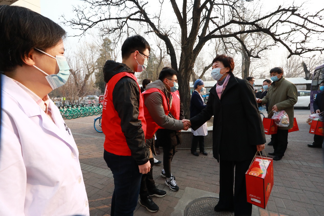 在校医院,陈旭为春节值班医生、护士、学生志愿者送上新春祝福。陈旭充分肯定了医务人员、志愿者学生在日常诊疗、核酸检测、疫苗接种和疫情防控中付出的辛勤汗水,希望大家早做准备、为迎接学生返校提供全面保障,为做好北京市疫情防控工作而共同努力。