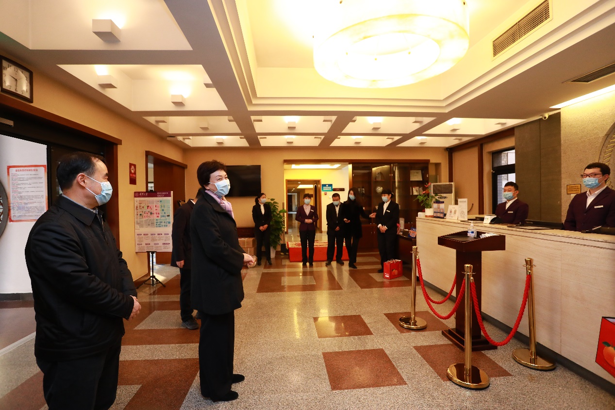2月11日除夕上午,陈旭首先来到甲所宾馆大厅,了解春节期间客房预定、餐饮服务、疫情防控等情况,对大家坚守工作岗位、为疫情防控付出的努力表示感谢,祝福大家牛年吉祥如意。