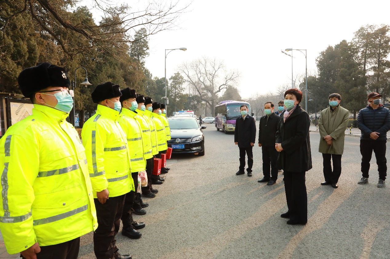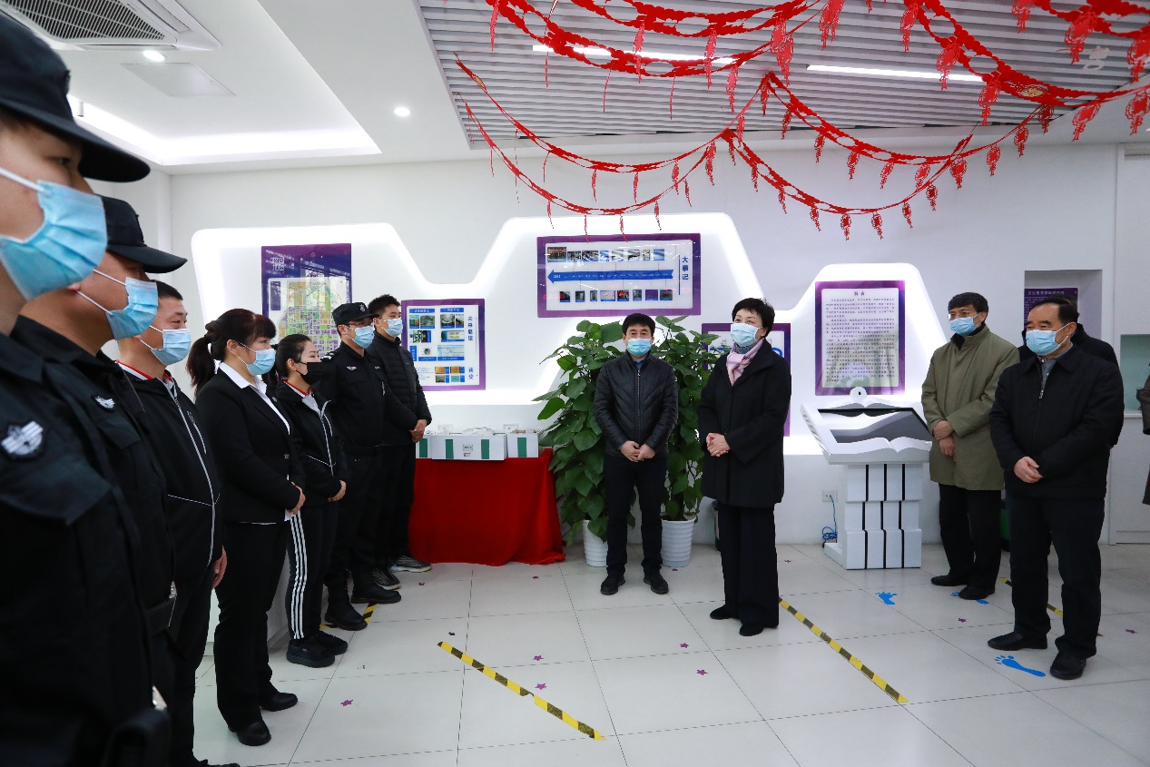 在学校西门,陈旭向春节期间坚守岗位的安保人员表达新年祝福,并表示,希望大家在新的一年继续做好疫情防控和校园保卫工作,发扬孺子牛、拓荒牛、老黄牛精神,为学校的安全稳定作出新的贡献。