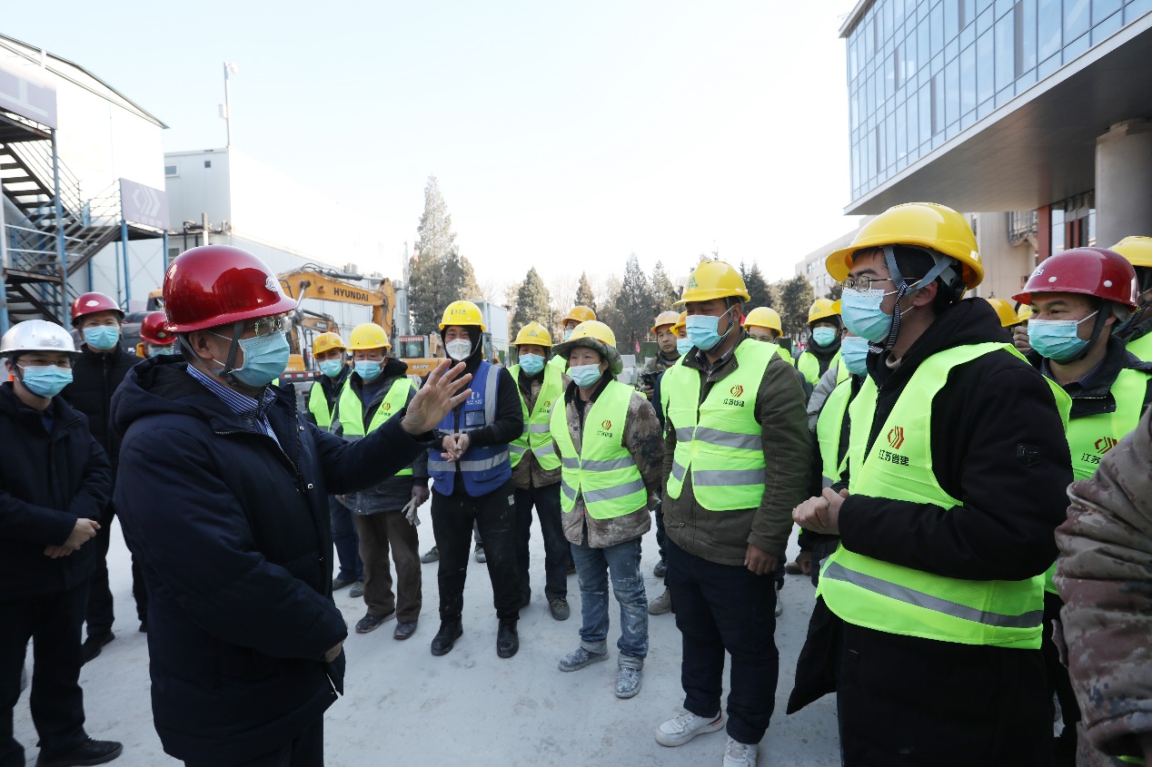 来到经管学院扩建及三创中心项目施工现场,邱勇详细查看项目建设情况,询问工程进度和防疫措施,并进入楼内充分了解区域划分和内部设计规划。邱勇感谢大家在春节期间依然坚守岗位,保障工期顺利进行。