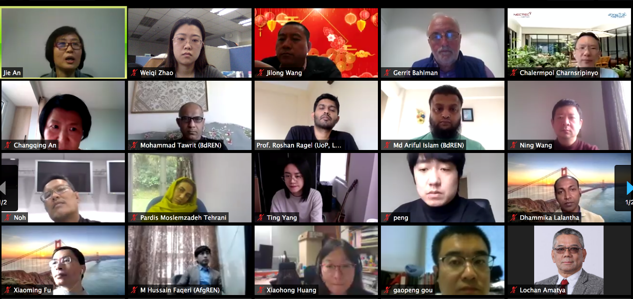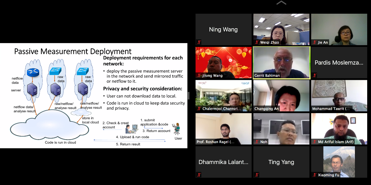 新冠肺炎疫情给项目的国际合作带来了一定程度的困难。为保障国际科研合作的顺利开展,本次会议前夕,清华团队与英国萨里大学科研团队及新加坡、泰国、马来西亚、阿富汗、孟加拉国、斯里兰卡等国家教育科研网负责人多次召开双边会议,深入沟通项目合作事宜并积极为国际合作解决困难。