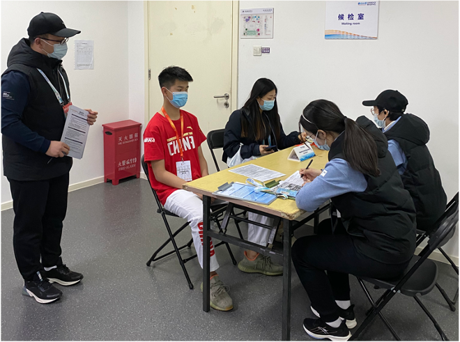 12名反兴奋剂志愿者于4月1至4月10日分别在五棵松体育中心和国家体育馆开展测试赛兴奋剂检测工作。志愿者们的工作主要围绕对运动员及时通知信息、检查陪护、注意事项提醒等方面,每个工作环节都有标准化服务流程和工作用语,需要严谨认真对待。在一日三赛的情况下,志愿者们往往需要工作至深夜,虽然有些辛苦,但大家都保持积极的工作状态直到完成最后的工作。