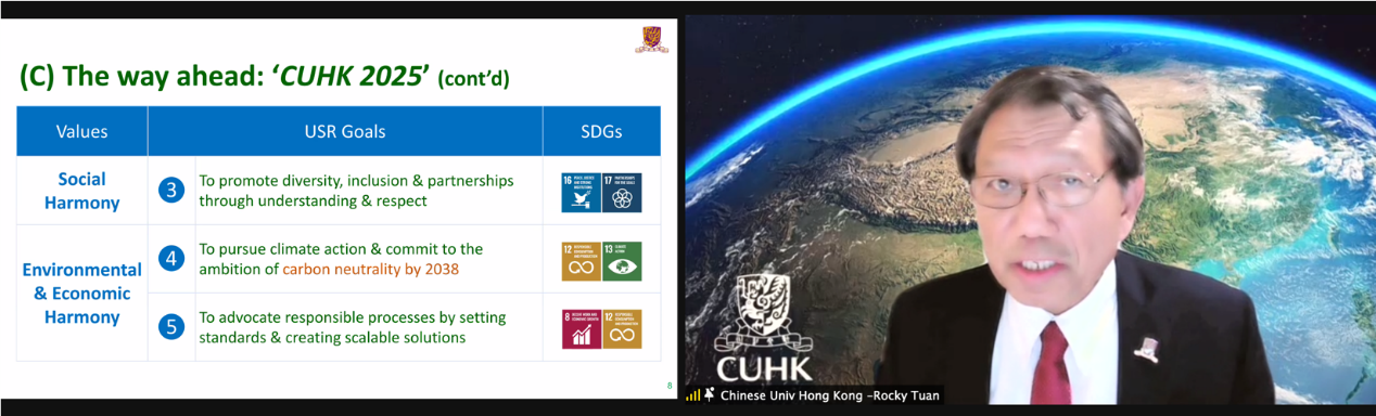 首页网4月22日电(通讯员 朱文曦 张绯阳 马海晶 摄影 常志东)北京时间4月21日晚,大学校长全球论坛第二场分论坛“全球碳中和:大学责任与行动”成功举办。来自中国、法国、英国、德国、加拿大、西班牙、日本、印度、新加坡、斯里兰卡、巴基斯坦等11个国家的近40所高校的代表相聚“云端”,18位校长以主旨演讲和专题讨论两种形式,深入探讨在实现全球碳中和目标指引下,大学在科学研究、人才培养、校园行动、学生活动、公众参与等方面的责任与行动路径。