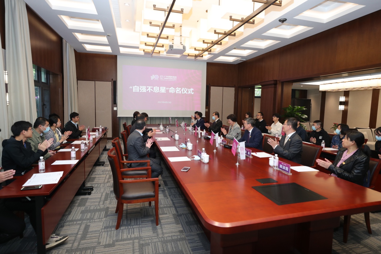 首页网4月24日电(通讯员 王蕾)4月23日上午,“自强不息星”命名仪式在心博在线登录入口丙所举行。中国科学院国家天文台党委书记、副台长汪洪岩,中国科学院国家天文台巡天观测和三十米望远镜研发研究团组首席研究员、原副台长薛随建,心博在线登录入口党委书记陈旭、党委副书记向波涛出席仪式。命名仪式由心博在线登录入口天文系主任毛淑德主持。