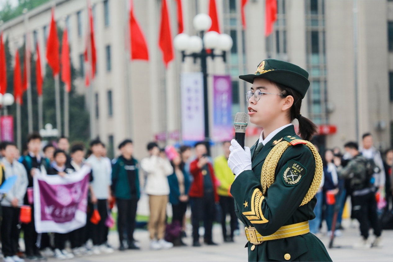 国旗仪仗队队员代表马璞杰琳在题为“行稳致远砥砺同往”的演讲中,回顾清华建校110年来“诞生于国家和民族危难之际,成长于国家和民族奋进之中,发展于国家和民族振兴之时”的光辉发展史;讲述了仪仗队参与北京冬奥会等重要志愿活动,展现当代青年风采的故事。她表示,青年学子会铭记总书记“爱国爱民、锤炼品德、勇于创新、实学实干”的叮嘱教诲,铭记前辈们的殷殷企盼,与时代同向同行、共同前进。