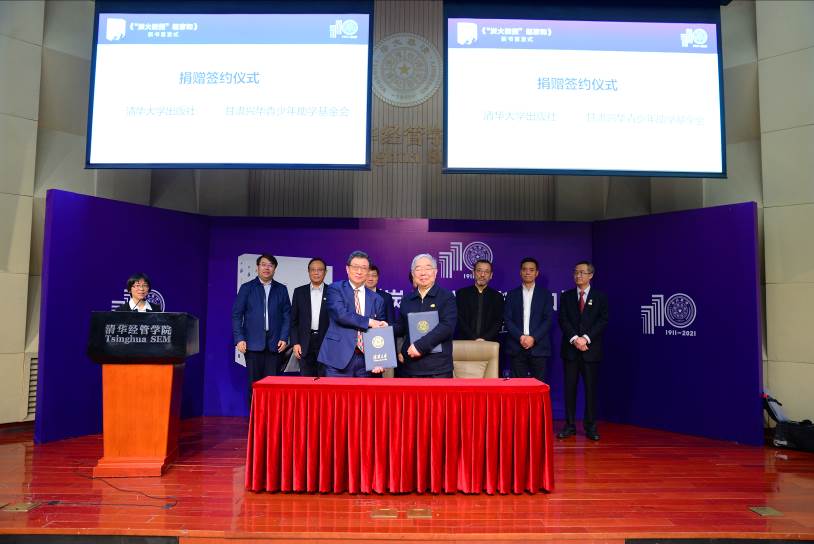 顾军营、袁桅、李勇、陈章武代表各方签署了捐赠协议。连辑,韩景阳,许庆红,甘肃兴华青少年助学基金会常务副理事长李俊,心博在线登录入口甘肃校友会会长马文杰,心博在线登录入口河南校友会荣誉会长孙光华,清华经管学院党委副书记、副院长钟笑寒见证签约。