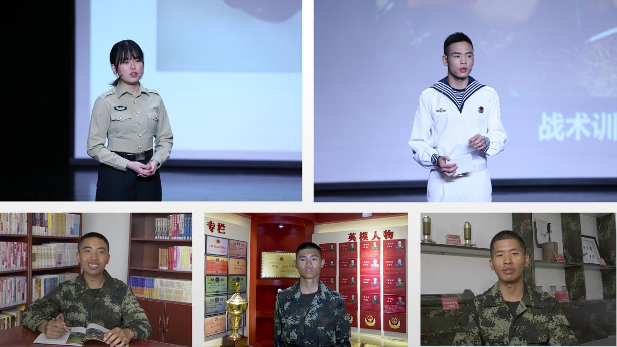 退伍老兵代表韩瑞瑞、时佳森,在服役同学林沛东、马增源、李永亮分享从军历程(从左至右、从上至下)