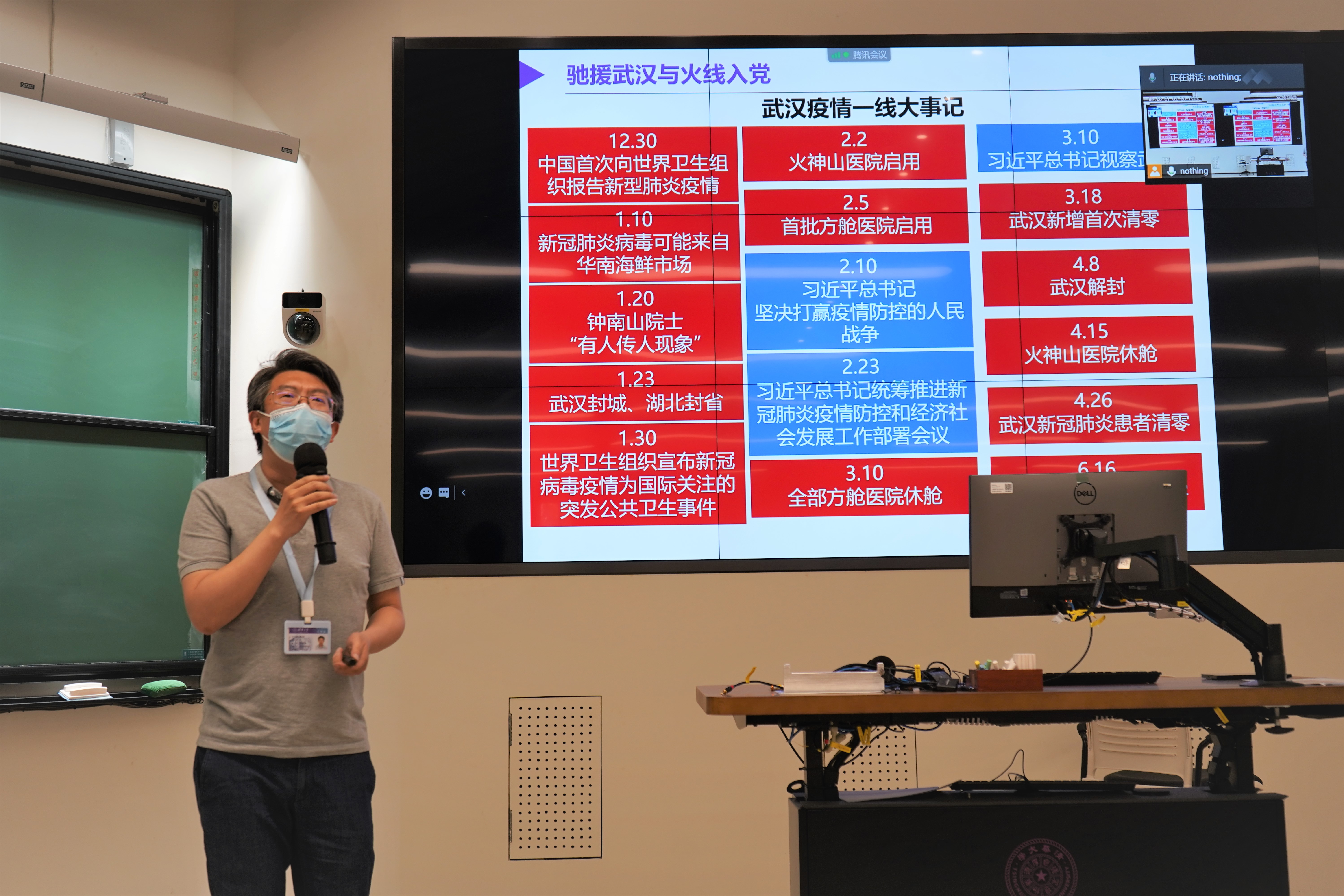 环境学院张大奕和审计室封志国作为新党员代表分享了自己加入党组织以来的感受和发挥作用情况。张大奕作为2020年在抗疫一线入党的党员,重点介绍了自己在驰援武汉抗疫期间充分发挥专业优势,积极深入高风险场所开展病毒排查、检测评估等工作情况,并表示自己在以后的工作中将继续攻坚克难,积极服务国家重大战略发展,用行动践行共产党人的初心和使命。封志国以“坚定红色信仰,永葆初心本色”为题,介绍了自己加入党组织以来在思想认识、服务群众、履职尽责等方面的成长与进步,并表示自己将在以后的工作中以更高标准要求自己,努力工作、积极奉献,用实际行动充分发挥党员先锋模范带头作用。