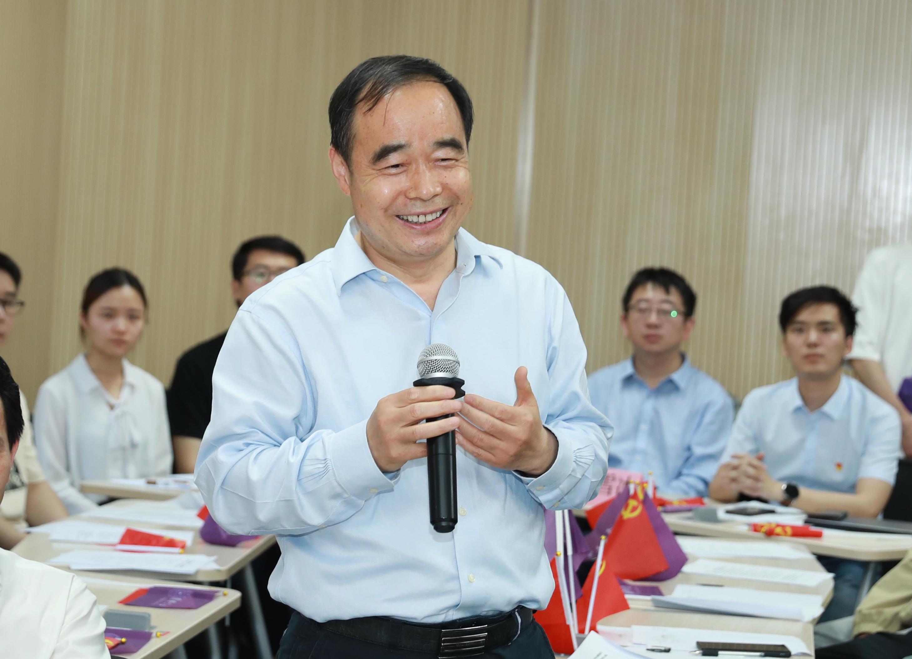 首页网5月25日电 5月20日至22日,全校共100个本科生党团支部、党课学习小组在第四教学楼和第六教学楼,围绕“百年接力、强国有我”主题集中举办了本学期第二批主题党团日活动。副校长吉俊民、郑力,校党委副书记向波涛及各院系部处相关负责同志深入各个党团班集体,围绕党史学习教育相关话题与同学们进行深入交流。