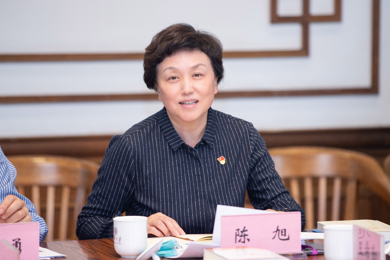 陈旭主持会议并作总结讲话。她表示,中国共产党人在各个历史时期形成的伟大精神都来源于为中国人民谋幸福、为中华民族谋复兴的初心使命,这些伟大精神又在践行初心使命的过程中发挥了凝聚力战斗力的重要作用。当前,学校正在开展的“我为群众办实事”系列活动,其中,对校园红色文化资源系统挖掘和保护利用的工作,既是符合习近平总书记用好红色资源、传承红色基因要求的重要举措,也能为弘扬党的伟大精神、深化党史学习教育成效提供生动载体,学校要把这项工作纳入“十四五”党的建设规划和文化建设规划,把校园红色文化资源建设好、利用好。