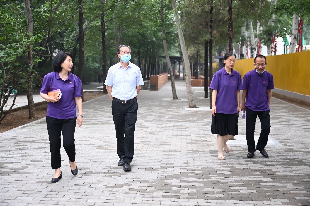 姜胜耀还到附小“我为群众办实事”的现场调研。附小党总支书记窦桂梅汇报了附小“我为群众办实事”的初心,原本附小西门外整体环境不适宜学生上学放学的情况,在附小党总支的努力下,已经得到全面改善,新改建的空间不仅为学生上学放学拓宽了区域,也为家长提供了舒适的等候区,更为周边提供了可以停放自行车的车棚等,真正解决了人民群众的困难,办了一件实事。