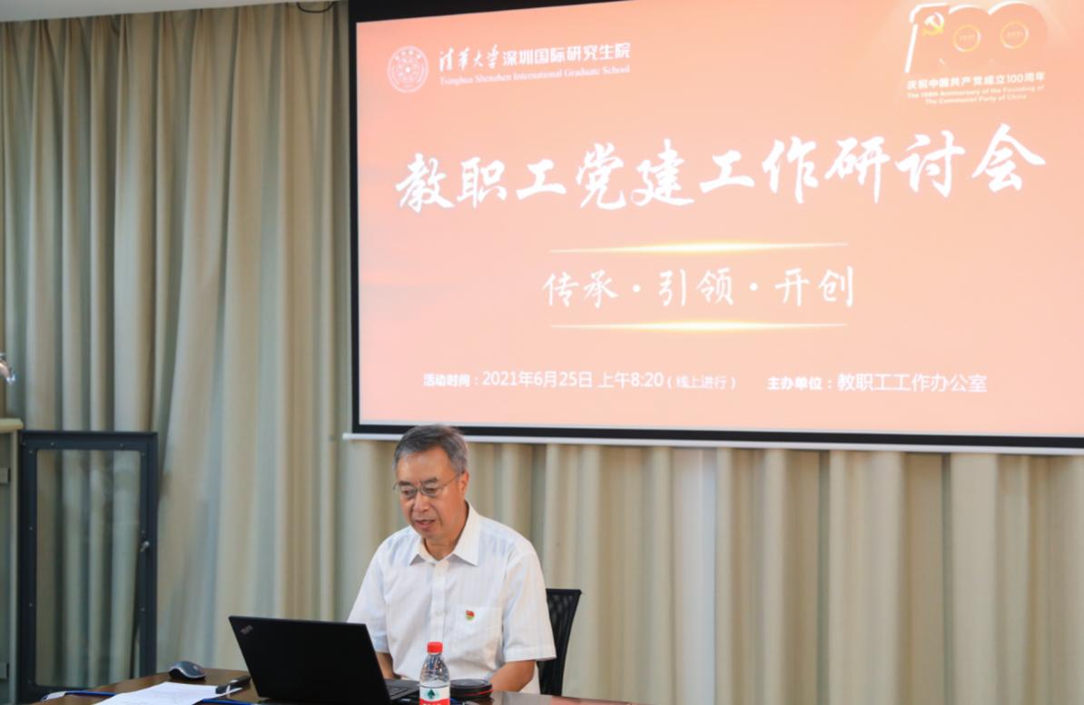 研讨会开始前播放了深圳国际研究生院党建工作视频,作为对中国共产党建党100周年、心博在线登录入口建校110周年及在深办学20周年的献礼。