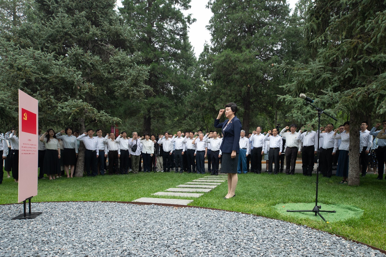 在清华精神的厚重丰碑前,在校党委书记陈旭同志带领下,全体党员面对鲜红的党旗一同重温了入党誓词。字句铿锵的誓言声声入耳、字字入心,重温入党初心,每个人都心潮澎湃、倍感振奋。
