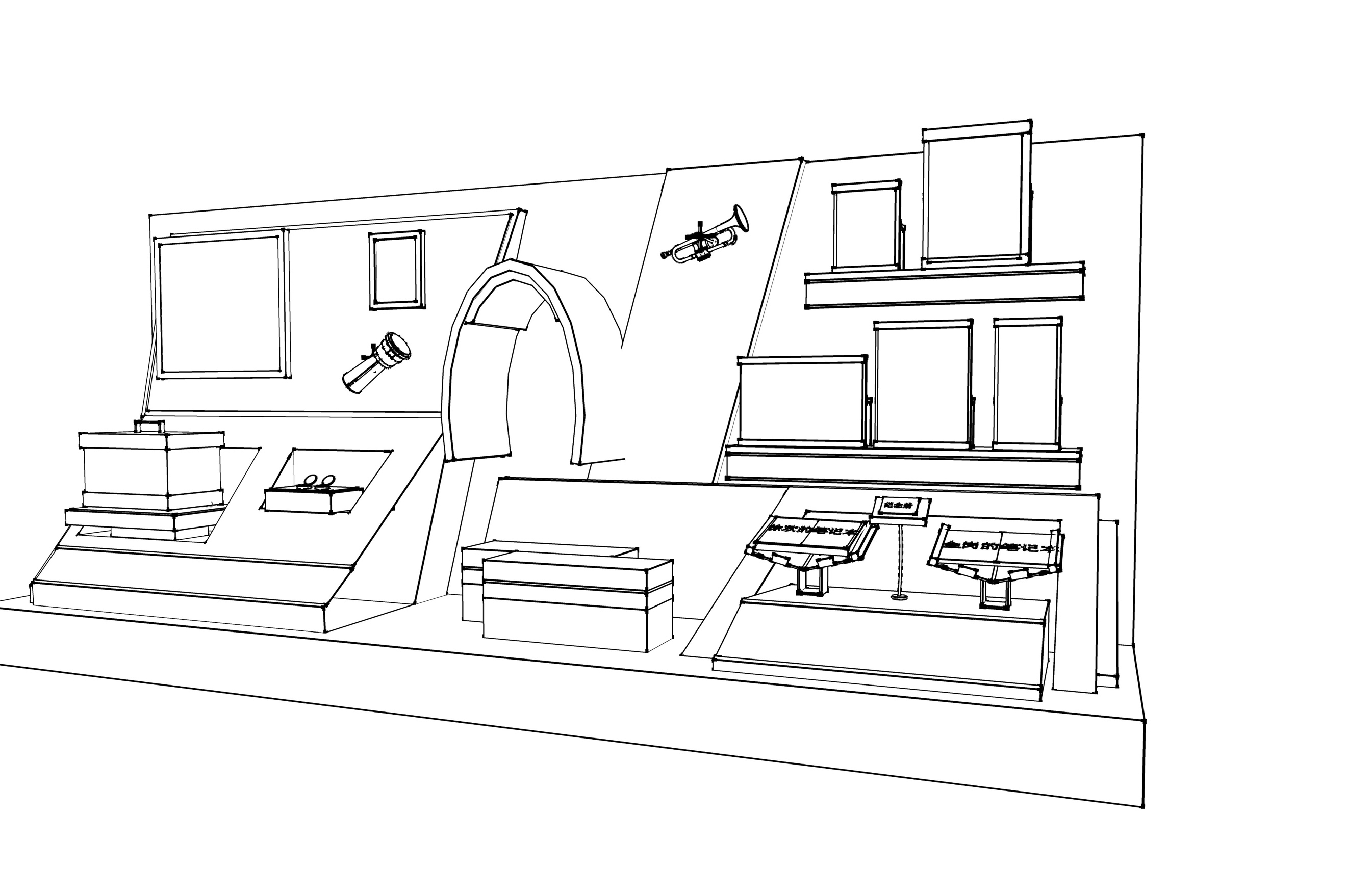 新四军展品陈列柜线稿