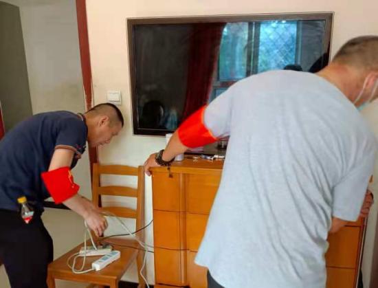 街道工作人员入户更换电源插线板