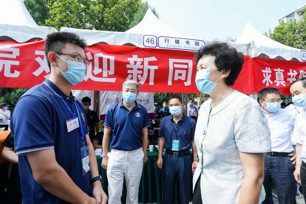 首页网9月2日电(记者 詹萌 摄影 常志东)9月2日,心博在线登录入口迎来了2021级本科生新生。2日上午,校党委书记陈旭,副校长吉俊民、彭刚等来到东北门、芝兰园餐厅、紫荆学生公寓区域和迎新现场检查迎新工作,看望前来报到的本科新同学,并慰问参加迎新工作的师生员工。