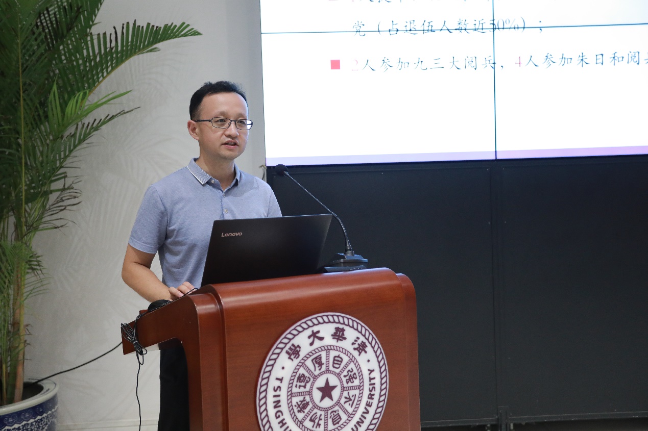 交流环节中,刚刚返校的退伍老兵、人文学院2017级本科生侯国庆分享了自己在漠河边防连队的从军经历,他希望新战友到部队能够受得住挫折,珍惜战友情谊,牢牢记住并践行校风“行胜于言”。服役于北海舰队某支队的化工系2016级本科生刘星宇分享了3个关键词——意义、经历、自律,他勉励大家身为清华士兵,要做到忘记自己的身份去对待他人,要牢记自己的身份去要求自己。服役于海军某试验船大队的航院2018级学生马一铭分享了服役这两年的所见、所闻、所感。他认为,部队生活能够发现一个不一样的自己,部队的工作能够磨练意志品质,永远不要忘记入伍的初心。