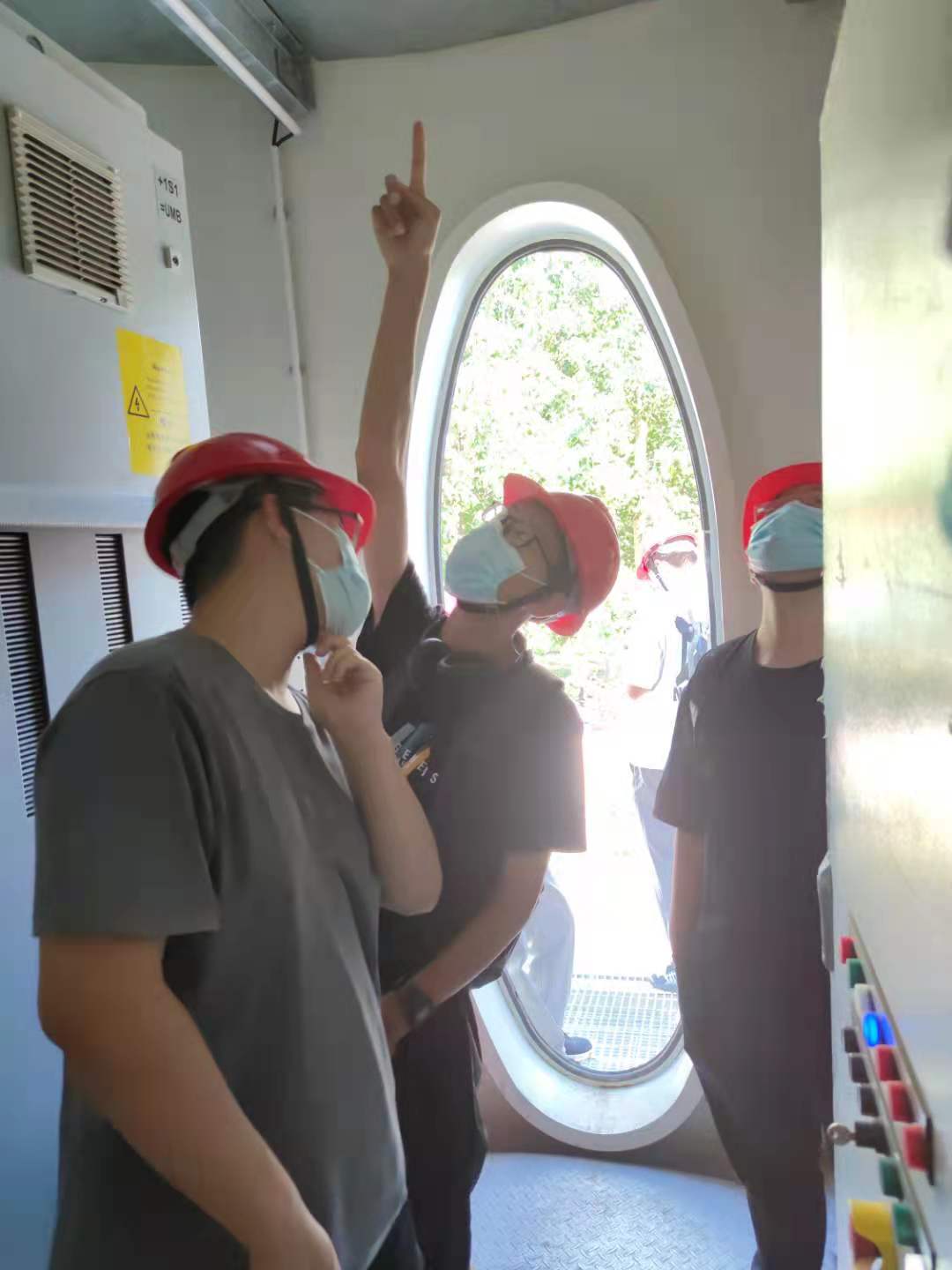 由行健书院烽火0和力0的同学组成的“薪火新燃”支队,通过线上线下结合的方式参观国能新能源研究院的风电项目,了解了风力发电目前的政策支持和未来的发展趋势、风力发电机的机械结构、醇胺法在处理燃煤电厂碳排放中的作用;并实地参观了风力发电机内部,了解了风力发电机的运行维护基本方法,学习了风机叶片与风机轮毂所应用的复杂力学问题,探索目前海上风电发展面临的力学设计、材料选择、利用效率等问题。