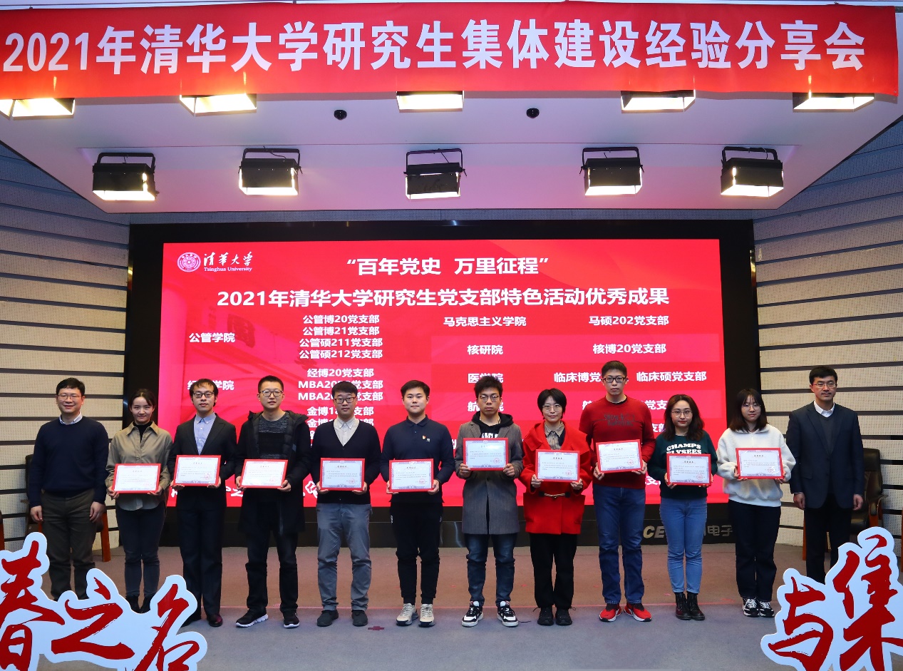 为深入开展党史学习教育,发挥党团班集体育人实效,研工部自2021年起设立党支部特色活动专项基金,支持研究生党支部结合院系特点开展党史知识竞赛、红色实践等形式多样的特色活动。本年度的党支部特色活动以“百年党史,万里征程”为主题,覆盖124个党支部,3200余名研究生参与。分享会上,校党委副书记过勇、党委研工部部长赵岑为20个获得“2021年研究生党支部特色活动优秀成果”的项目颁奖。其中,航博201党支部与无研203党支部作为获奖集体代表进行了分享。航博201党支部围绕建党百年重大契机组织开展“从石库门到天安门”系列红色实践,联合多家高校进行支部共建与理论学习,打造“行走的思政课”。无研203党支部以“换个思路学党史”为主题,分享了集体承办的电子系党史校史知识竞赛的突出成效,并以“一站到底”的方式在分享会现场开展了党史知识竞赛互动,得到了现场师生的热烈响应。