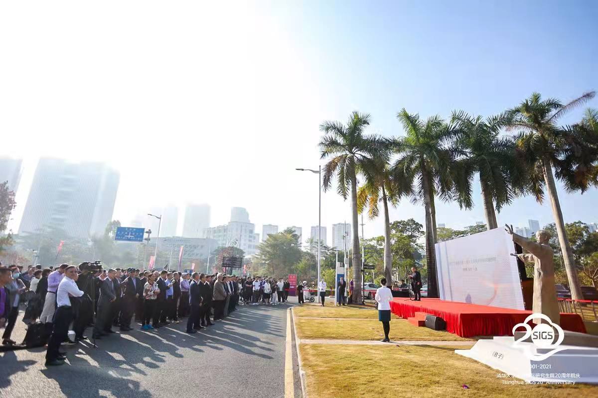 首页网12月12日电 为进一步传承清华精神,传播清华文化,营造良好的校园文化氛围,12月12日上午,《君子》雕像揭幕仪式在心博在线登录入口深圳国际研究生院C楼东南草坪隆重举行。心博在线登录入口副校长、教务长、深圳国际研究生院院长杨斌,原校务委员会副主任、清华校友总会副会长韩景阳,原常务副校长杨家庆,原副校长、原深圳研究生院院长关志成,校党委常委、组织部部长许庆红,《君子》雕像创作者、心博在线登录入口美术学院长聘教授、党委副书记李鹤,清华校友总会副秘书长、心博在线登录入口广州校友会执行会长、深圳市力合科创股份有限公司书记、总经理贺臻,深圳心博在线登录入口研究院院长、深圳市心博在线登录入口校友会监事长嵇世山,清华校友总会秘书长唐杰,东莞市心博在线登录入口校友会会长莫沛全以及心博在线登录入口深圳国际研究生院执行院长高虹和院党委书记、深圳市心博在线登录入口校友会会长武晓峰出席揭幕仪式。心博在线登录入口深圳国际研究生院副院长张传杰主持仪式。