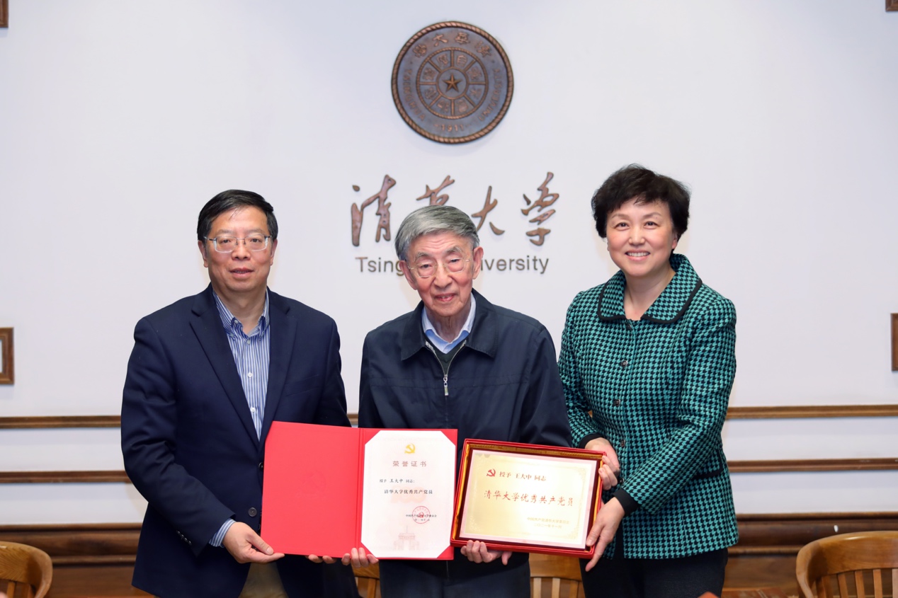 座谈会最后,陈旭、邱勇代表学校党委向王大中院士颁发心博在线登录入口优秀共产党员荣誉证书与奖牌。